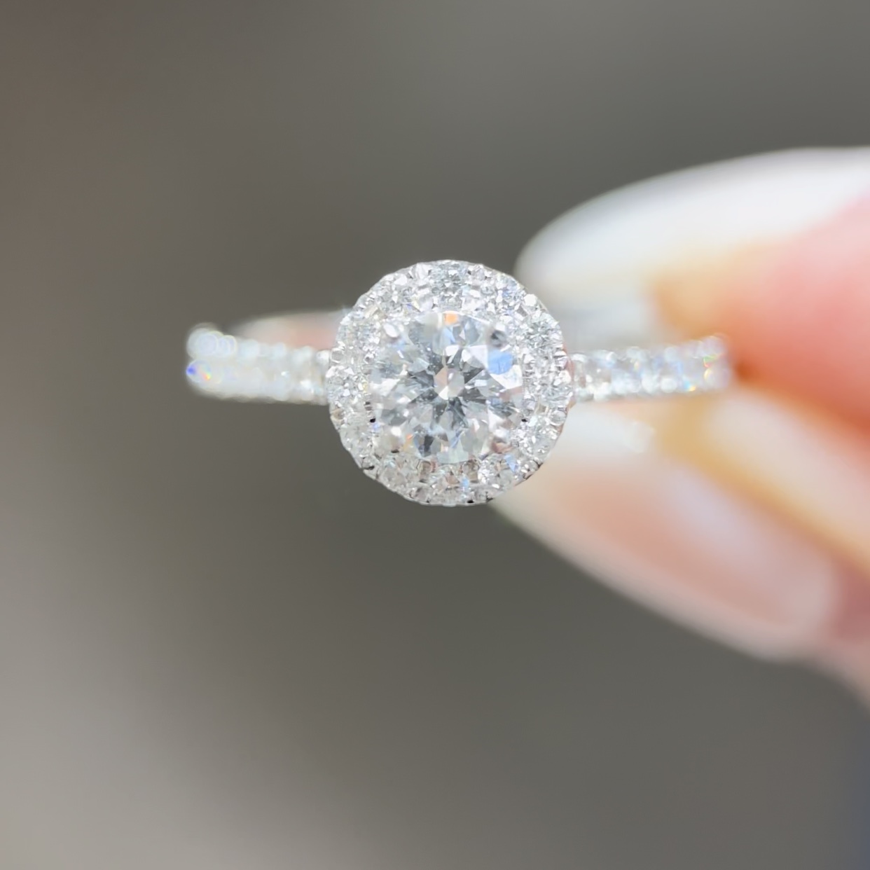 Solitaire Round Ring with Pave & Hidden Halo