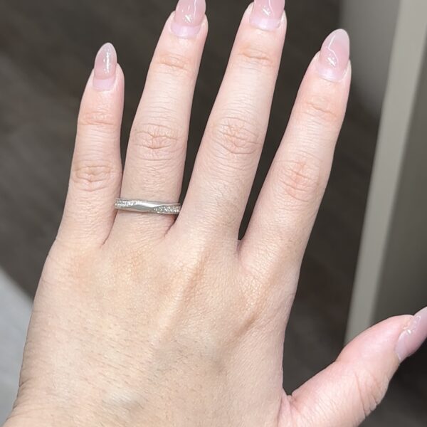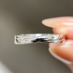 Clara Ring is a wedding ring with twisted band with a doff finish that is elegant, classic, and timeless. It has lab grown diamonds, making it a perfect wedding ring for the bride.