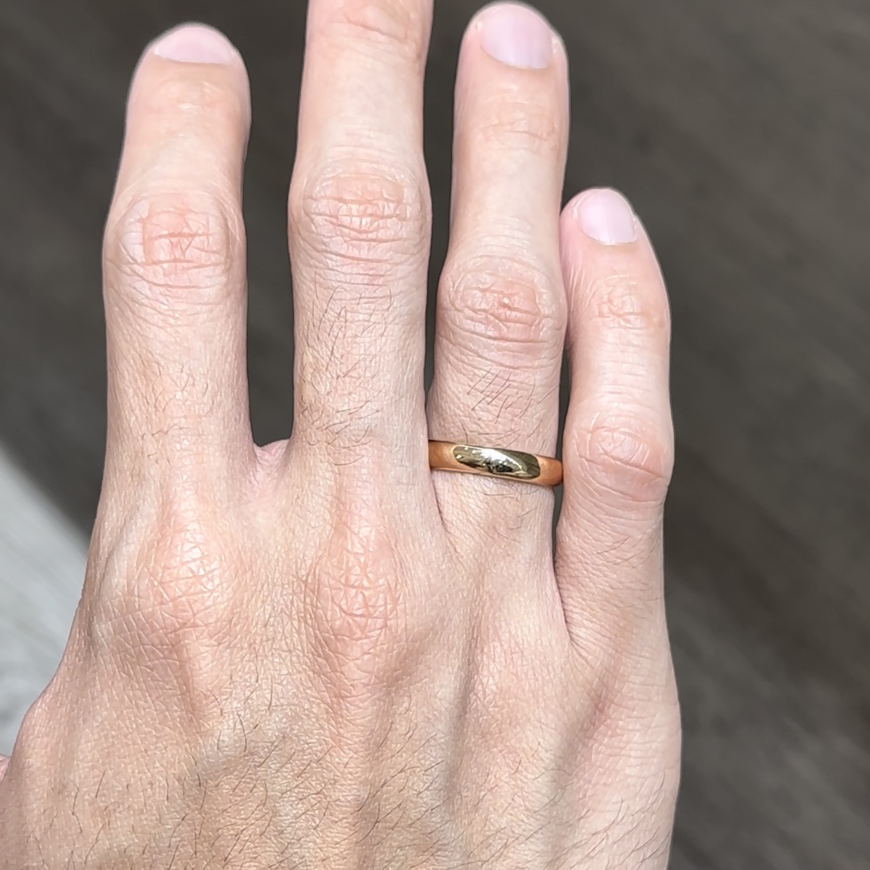 Dale Ring is a classic half round wedding band made of 18K gold. Simple and timeless band for the groom.
