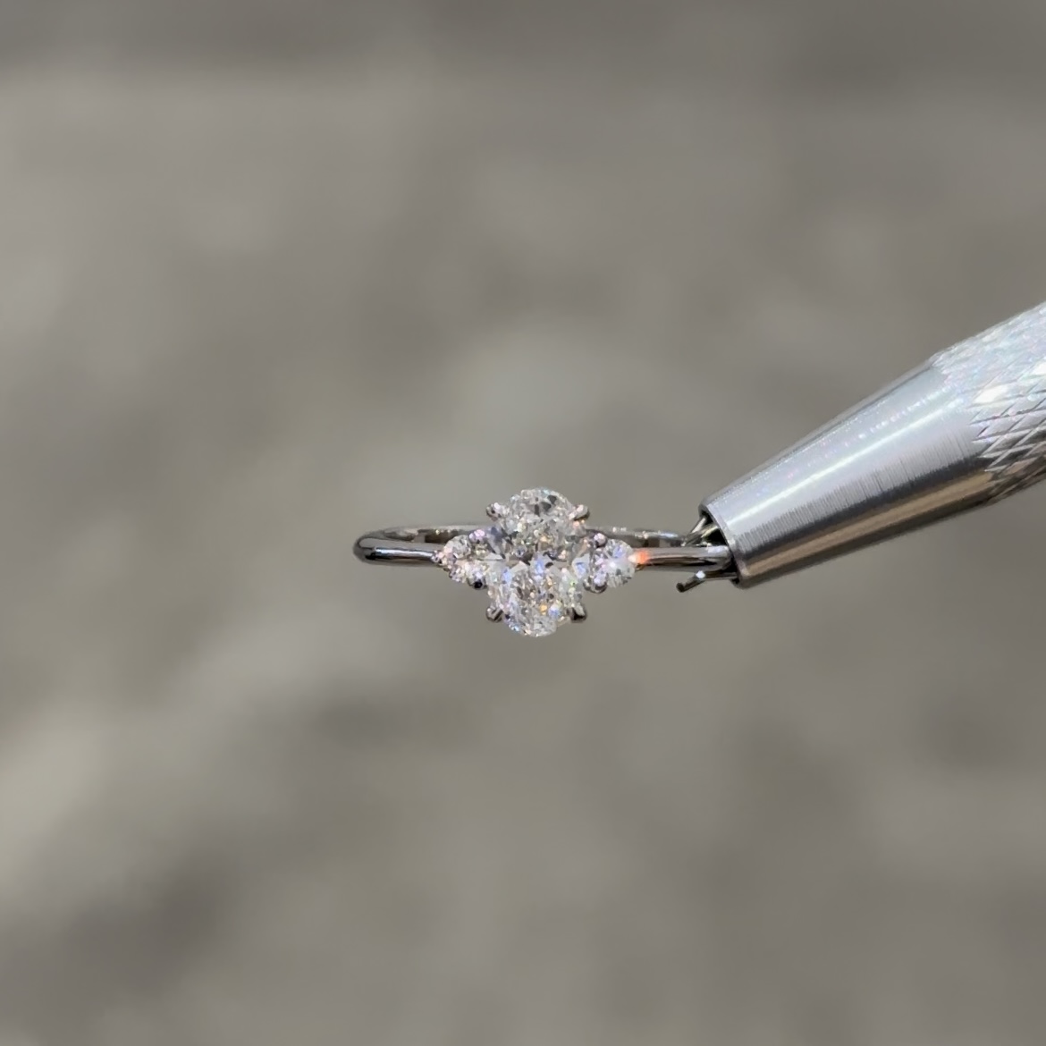 Emily Trilogy Ring | 0.72 ct oval trilogy ring | Lab Grown Diamond