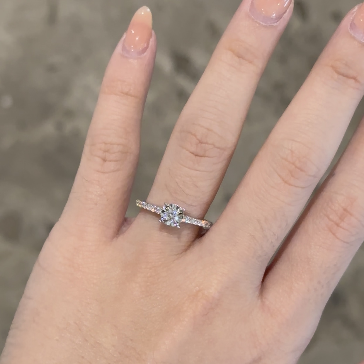 Janette Ring is a pretty solitaire ring with pave and illusion setting. This ring is ideal for ladies who prefer smaller carat weights with sparklier appearance.