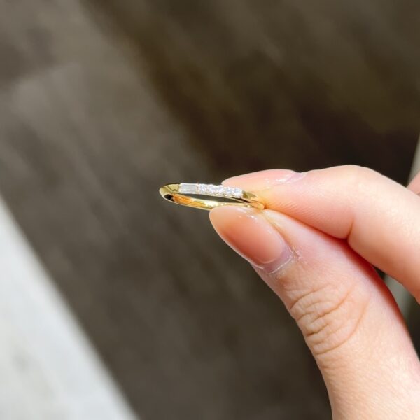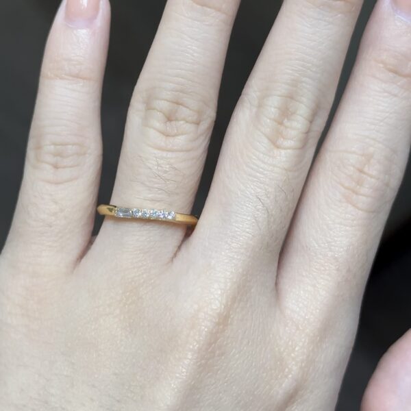 Michela Ring is a half eternity ring, combination of baguette and round diamonds. It is suitable for ladies who love gold and bold styles.