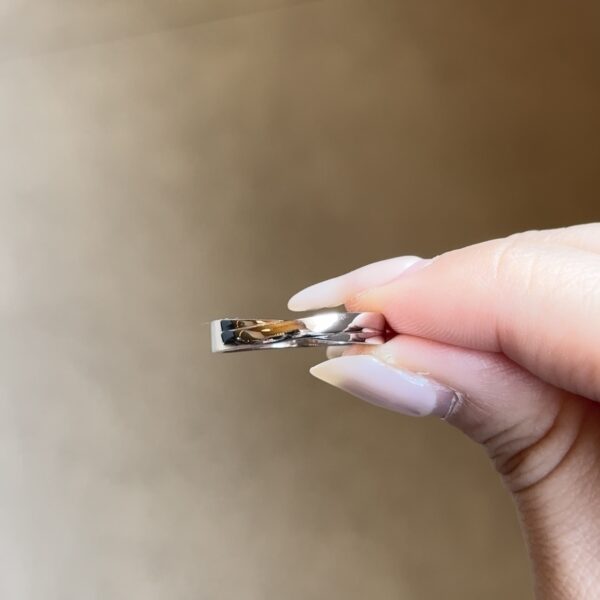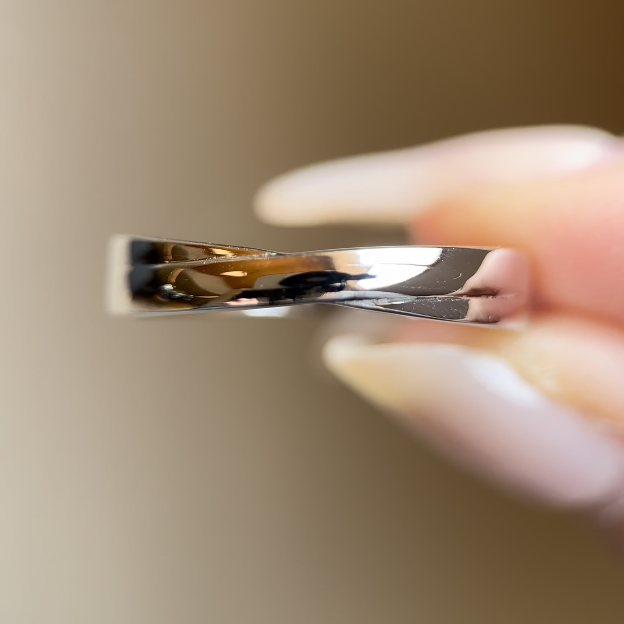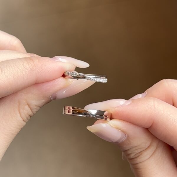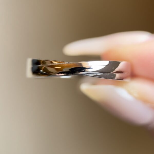 Caleb Ring is a trendy wedding ring with twist setting. This design is simple, yet stylish.
