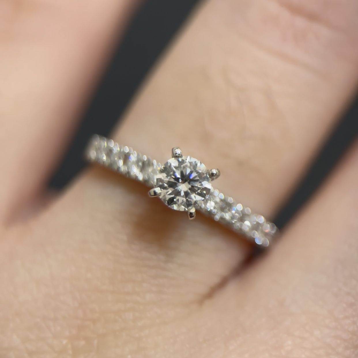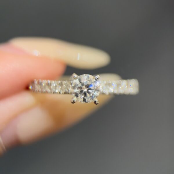 Sofie Ring is a pretty solitaire engagement ring with pave setting. This ring is dainty, yet super dazzling to be worn daily.